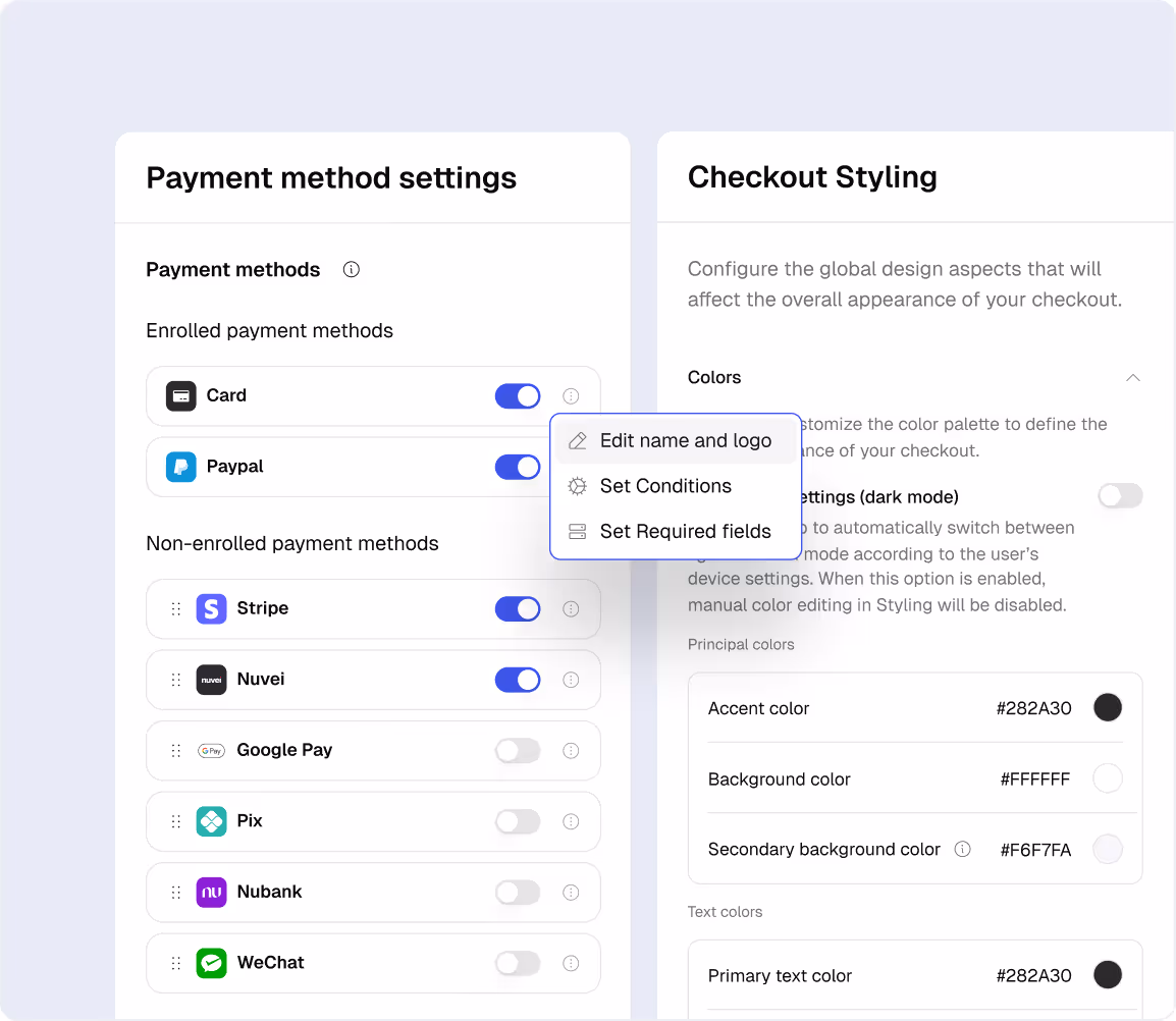 Create intuitive online checkout flows with our drag and drop no-code builder. Compatible with credit cards, bank transfers, local payment methods, wallets, and cash payments. We support 1,000+ payment methods worldwide.