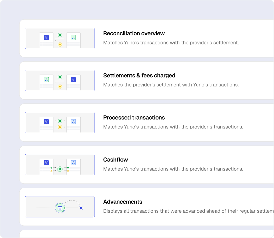 Enhance your reconciliation with pre-built integrations across majorpayment providers for seamless multi-source transactions.