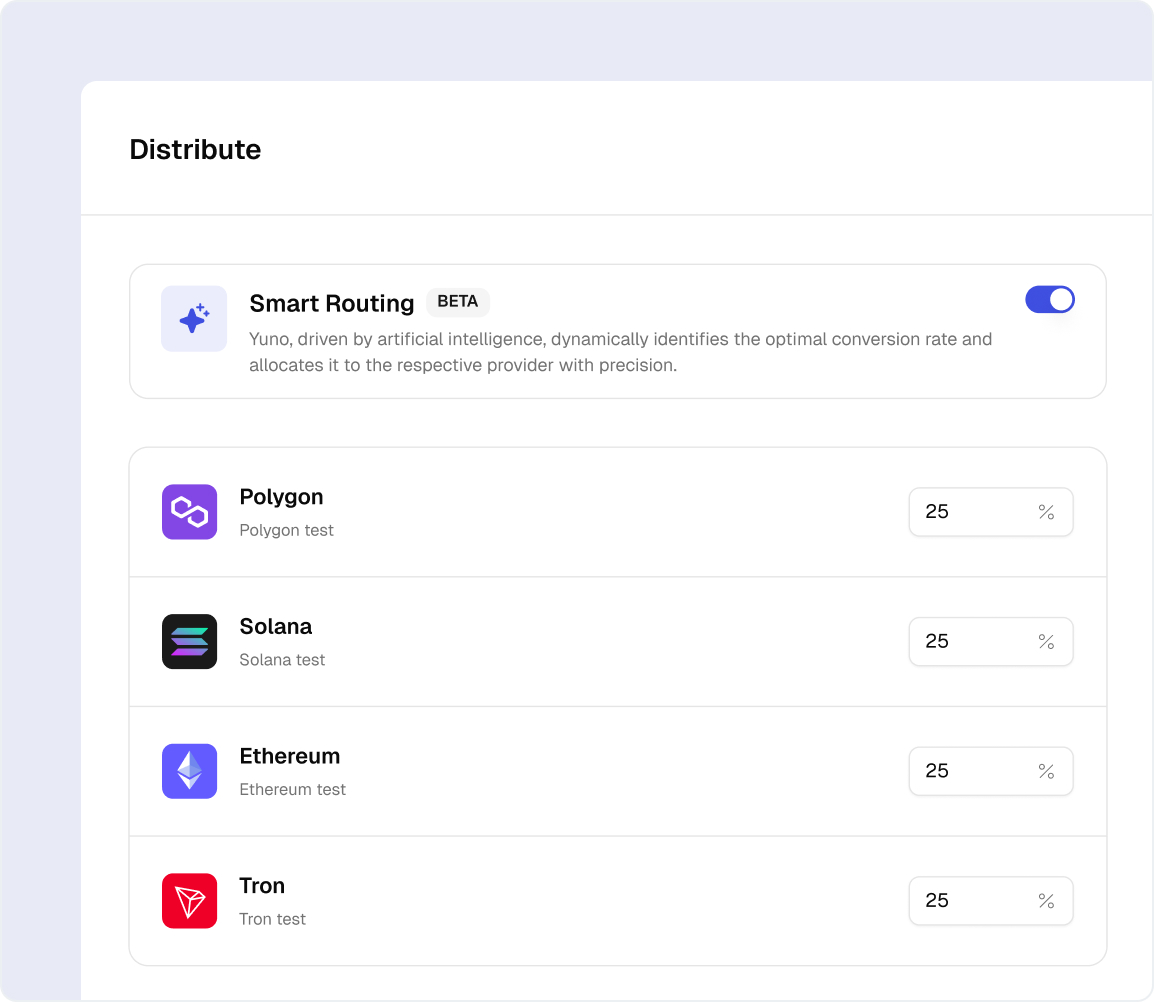 Real-time visibility and smart routing across wallets, networks, and flows.