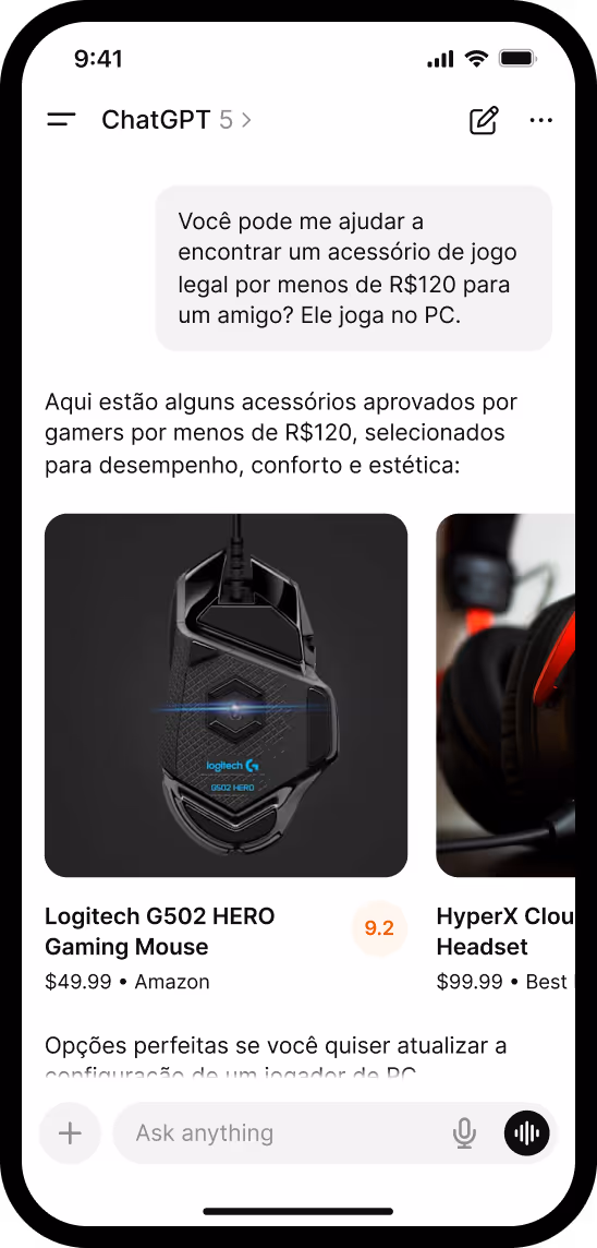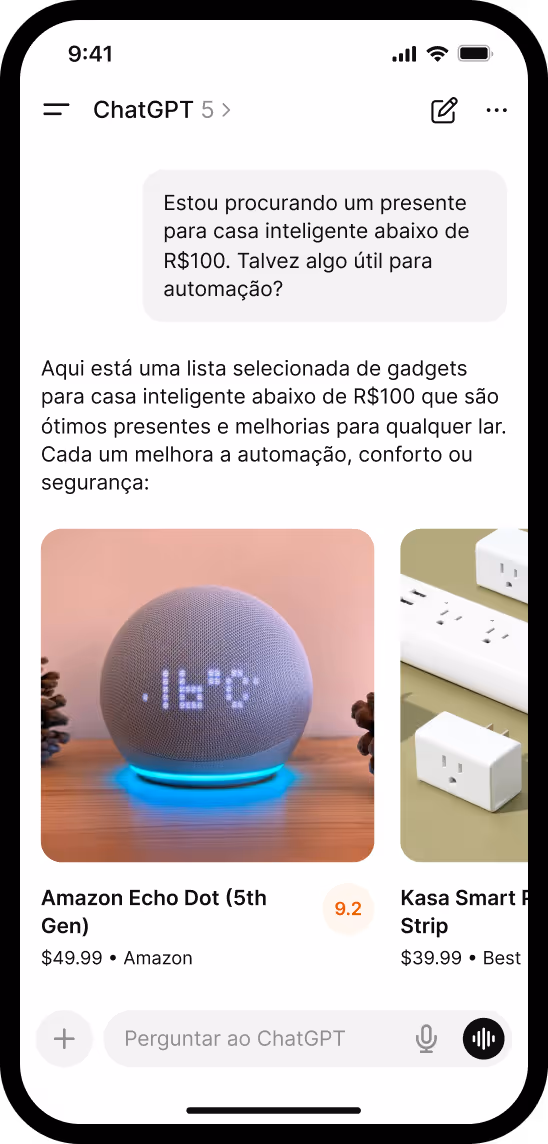 Seus produtos, compráveis diretamente dentro do ChatGPT